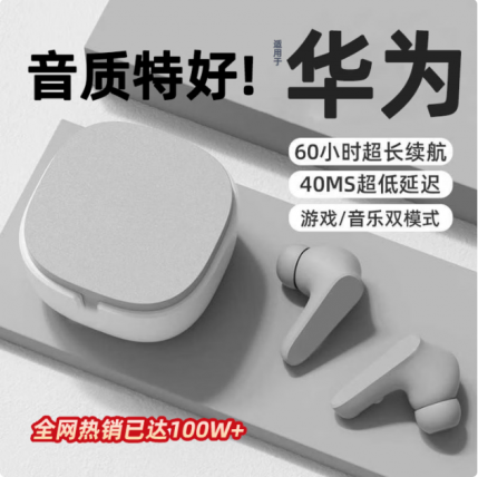 蓝牙耳机真无线入耳式降噪运动游戏音乐超长续航适用华为oppo苹果vivo 灰色【40ms低延迟+续航60h】