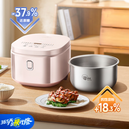 低糖电饭煲 4L无涂层电饭锅家用智能米汤分离沥米饭煲316L不锈钢3-8人多功能微压蒸饭锅MB-4E62LS